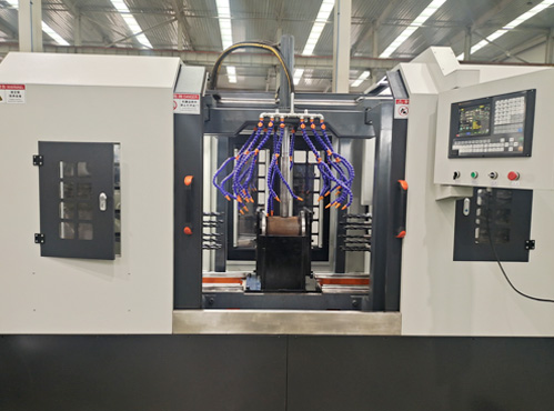 一、簡介該設備可完成空間多工位同時采用多把鏜銑刀具進行平面加工,還可完成閥門各法蘭連接面上的不同類型分布孔(如圓、橢圓、三角形等不規則分布孔系)的多工位同時加工,可大大提高加工效率,減少裝夾定位次數。
